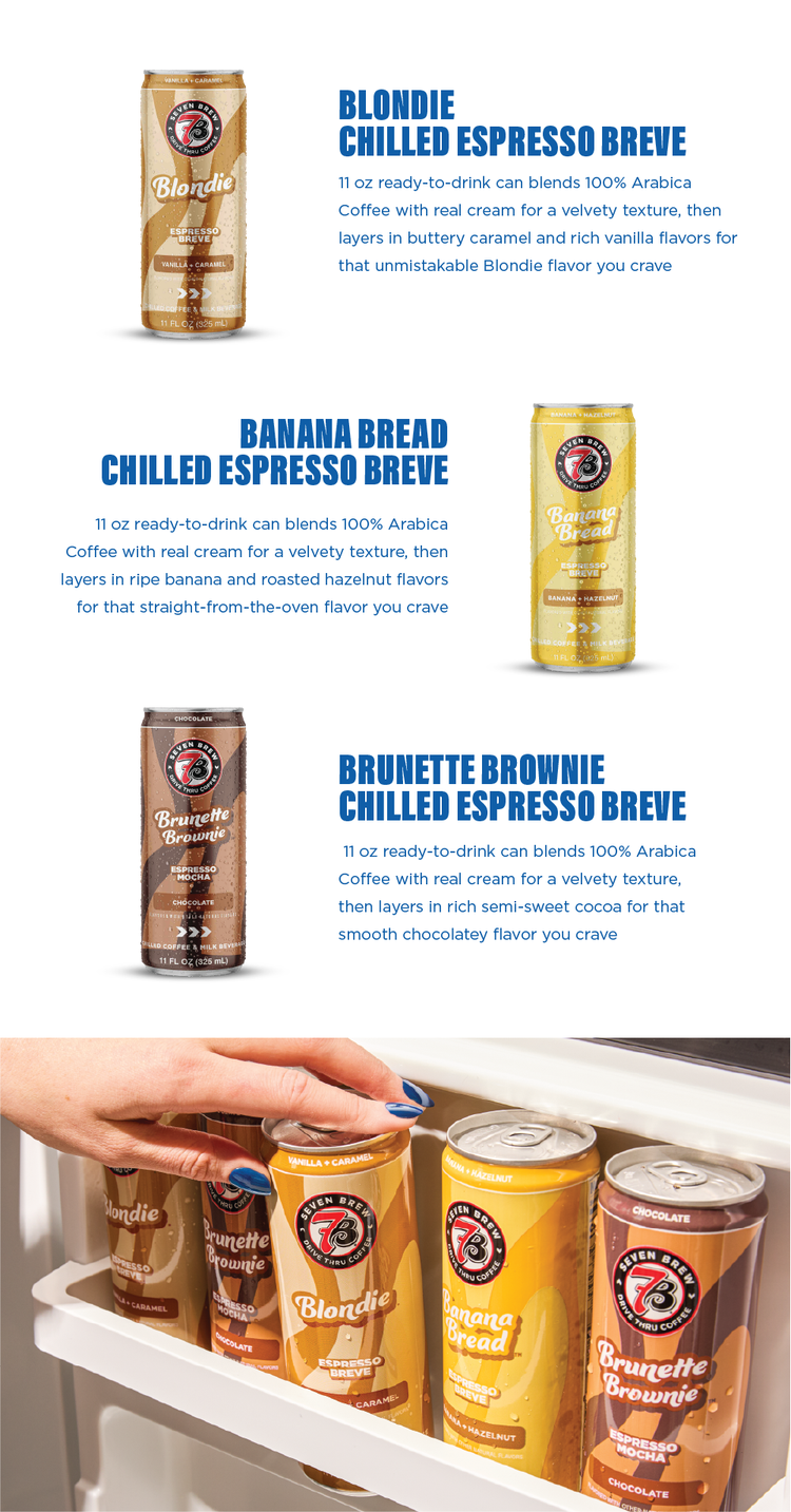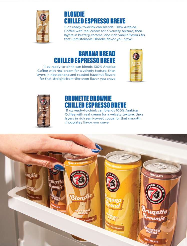 Delivering the craveable flavored drinks our customers have come to love from 7 Brew, now conveniently available in a can, was a key priority for us. These canned beverages deliver three stand‑inspired flavors with unmatched convenience for fans.