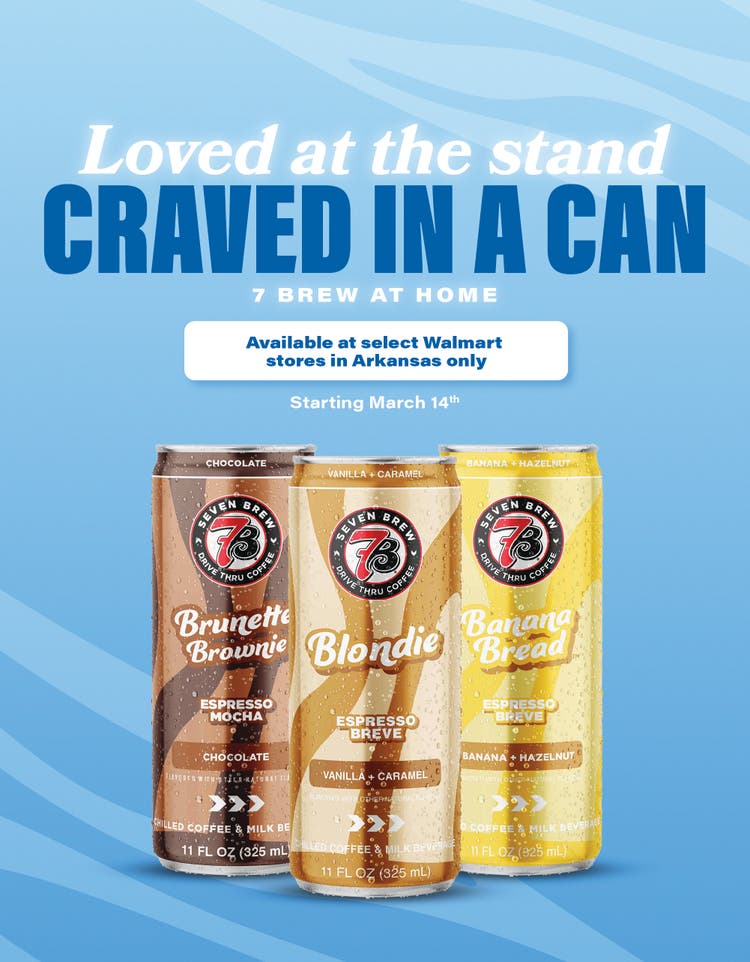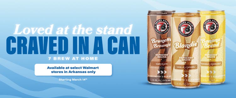 SPRINGDALE, AR, March 10, 2026 - 7 Brew, the rapidly-growing drive-thru beverage brand that is redefining what it means to grab a drink on the go, today announced the launch of three Ready‑to‑Drink (RTD) coffee flavors available in Walmart stores across Arkansas with the rollout beginning March 14.