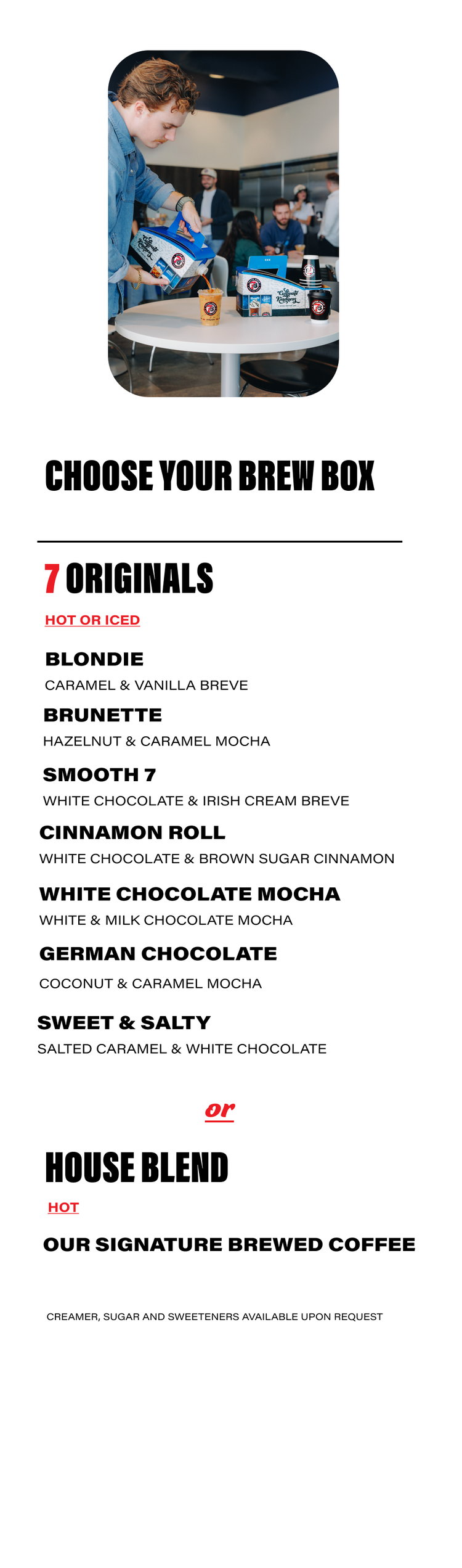 Brew Boxes are available in our House Blend or any of our 7 Original coffees.
